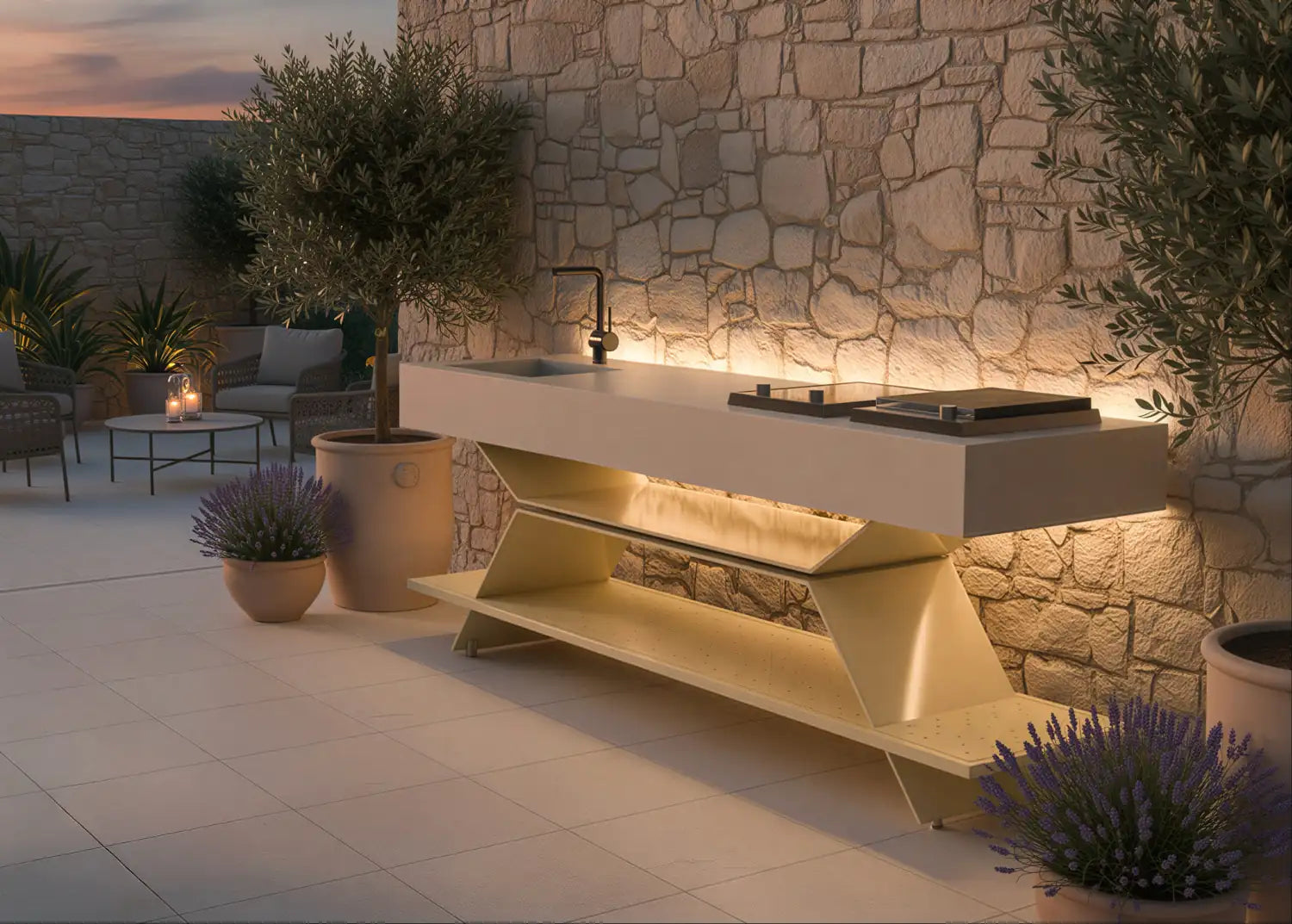 Unsere Outdoor-Küchen verbinden klares Design, moderne Technik und hohen Komfort. Sie werden individuell geplant und lassen sich sowohl in Material und Farbgebung als auch in Ausstattung und Funktion exakt auf persönliche Anforderungen abstimmen. So entsteht ein Ort, an dem Kochen, Genuss und gemeinsames Erleben auf natürliche Weise zusammenkommen.
