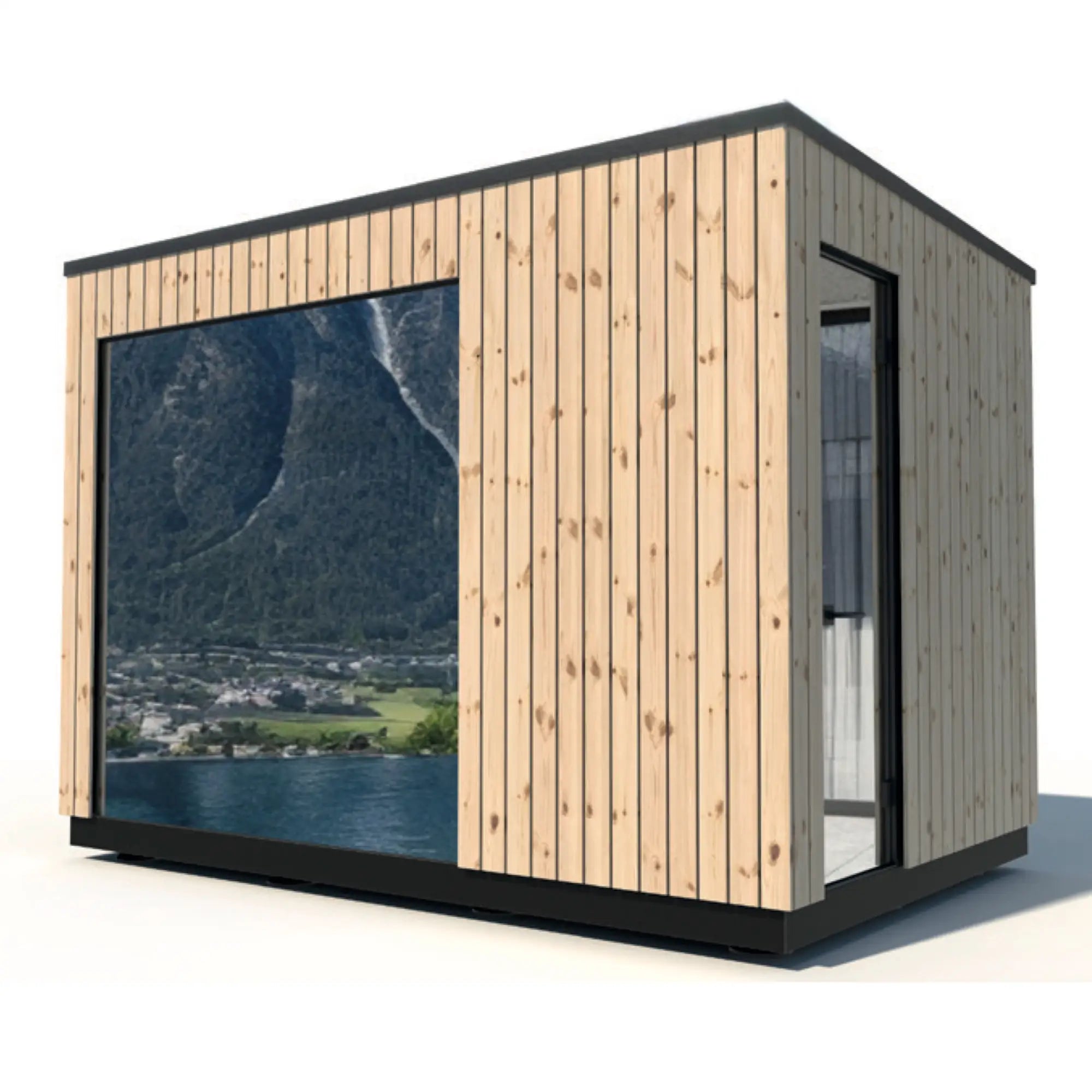Depending on the model, you can choose between Mirror Glass or Privacy Black glazing, thus determining the light effect, transparency and privacy of your garden sauna.